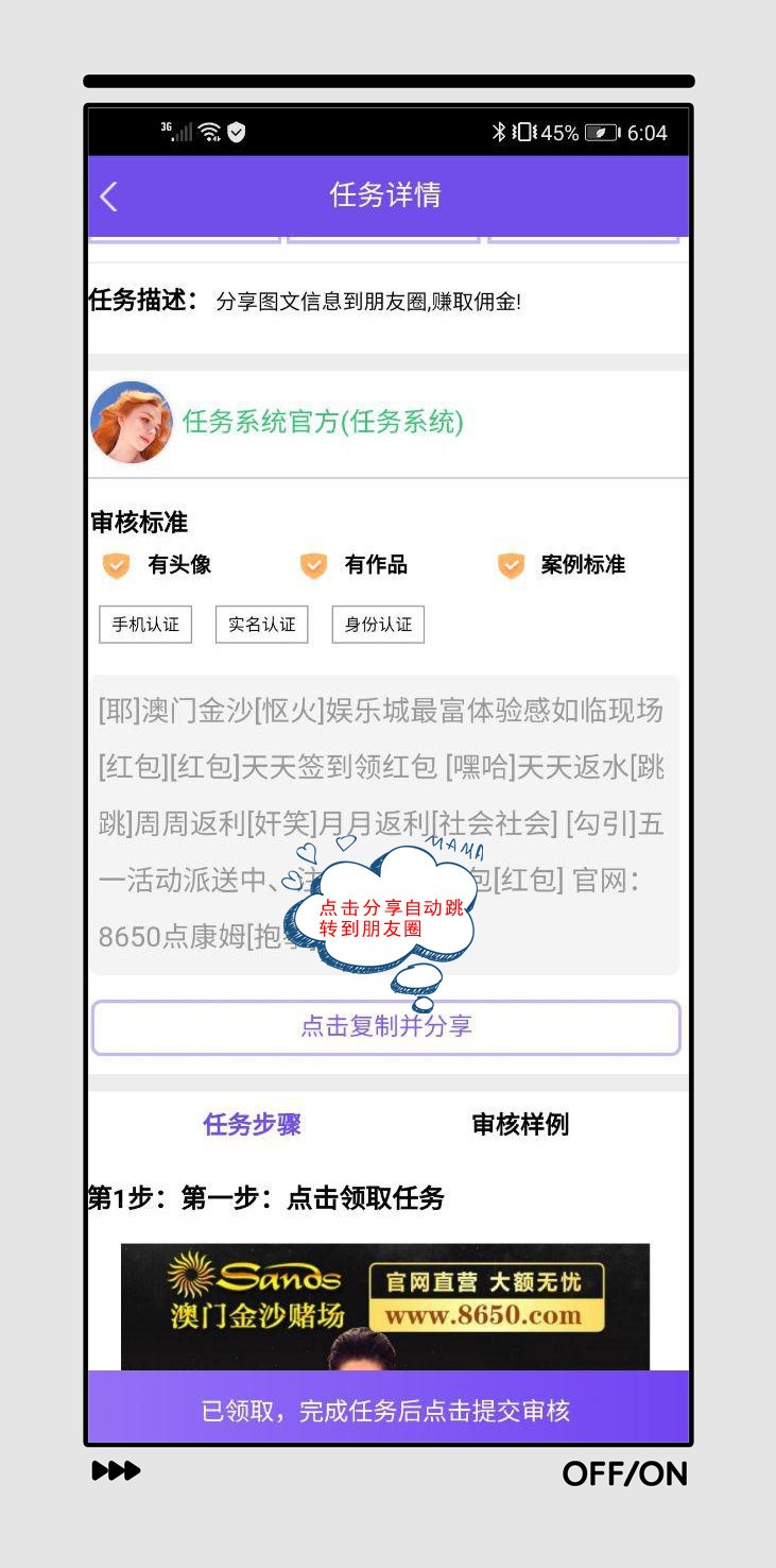 任务描述: 分享图文信息到朋友圈,赚取佣金!